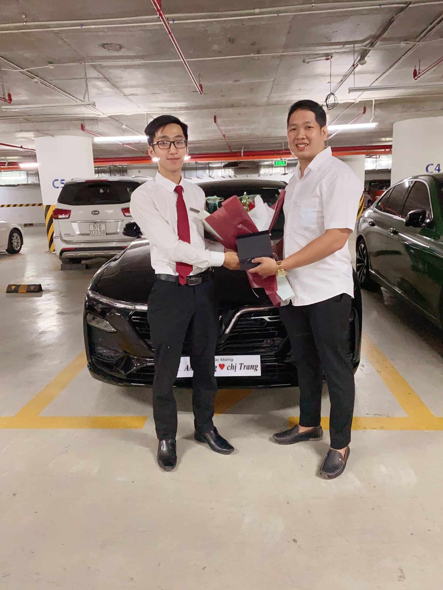Bàn giao xe VinFast Lux A2.0 cho vợ chồng chị Trang và anh Dũng bởi chuyên viên Trần Thịnh Hưng