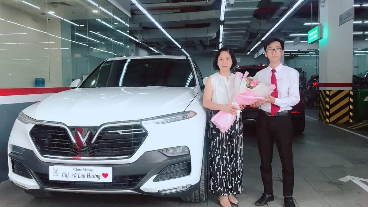 lễ bàn giao xe vinfast lux sa2.0 màu trắng cho khách hàng vũ lan hương bởi chuyên viên Trần Thịnh Hưng