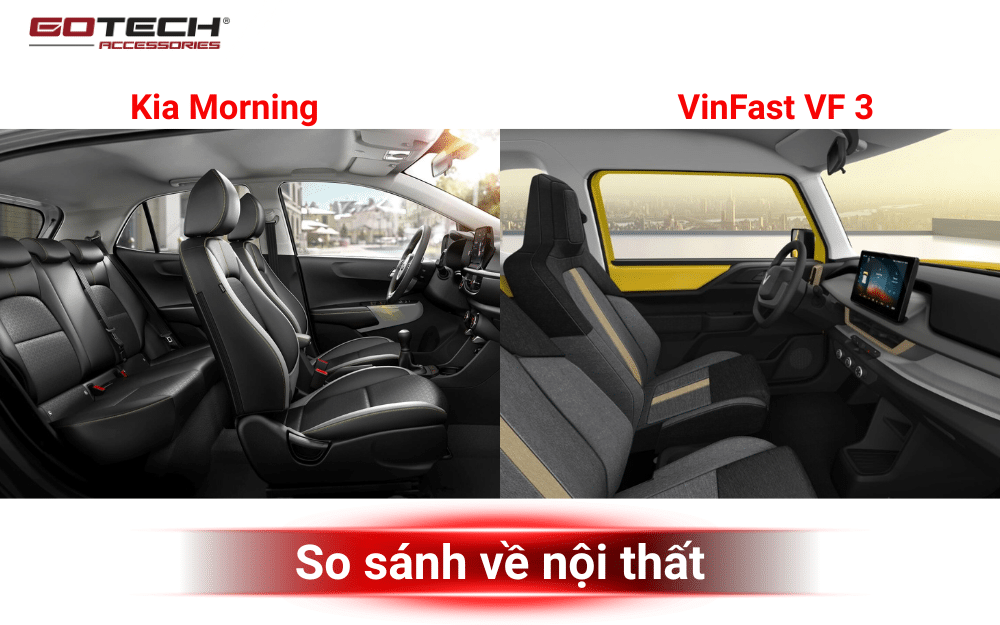 Nhìn chung, cả hai mẫu xe đều có nội thất hiện đại và tiện nghi, nhưng VinFast VF3 tận dụng tối đa không gian trong khi Kia Morning mang lại cảm giác thoải mái hơn cho người ngồi.