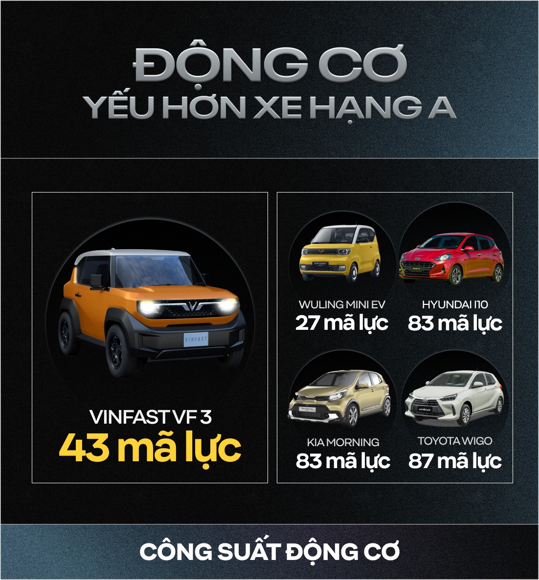 Hiệu suất động cơ của VinFast VF3 và Kia Morning