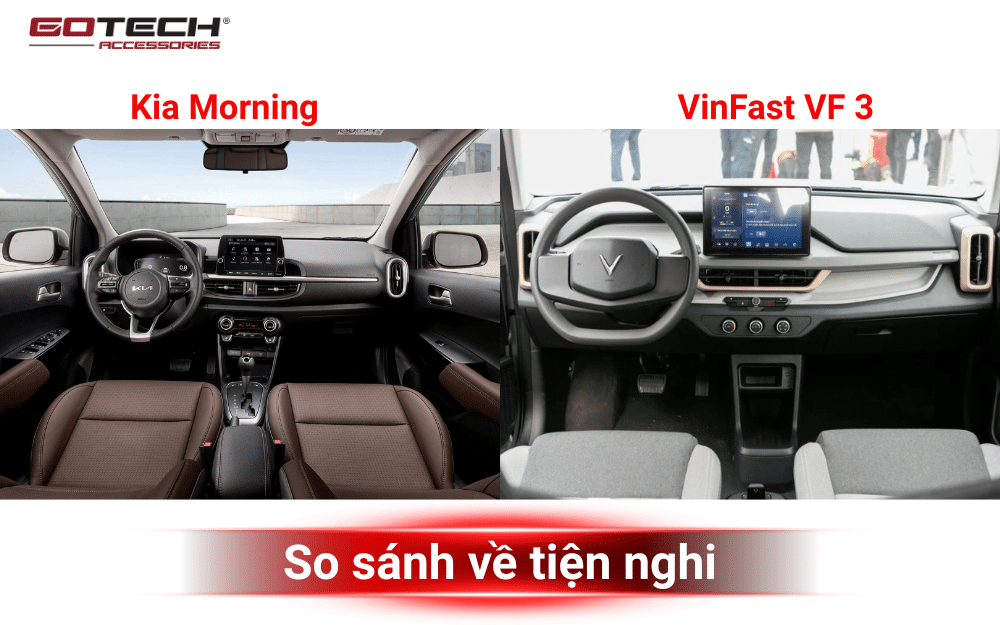 Nội thất và tính năng tiện nghi bên trong của VinFast VF3 và Kia Morning
