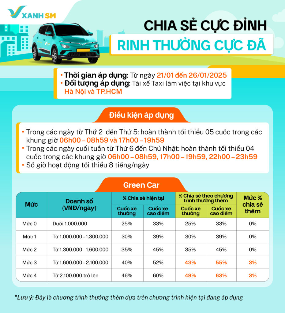 Các chương trình ưu đãi đặc biệt cho tài xế Xanh SM