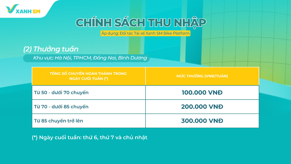 Tương tự, các đối tác trên nền tảng khác thường chỉ có thể chiếm khoảng 70% đến 75% doanh thu, tùy thuộc vào hiệu suất kinh doanh của họ. Điều này có nghĩa là tài xế Xanh SM có thể nhanh chóng đạt được thu nhập cao hơn ngay từ những tháng đầu hoạt động.