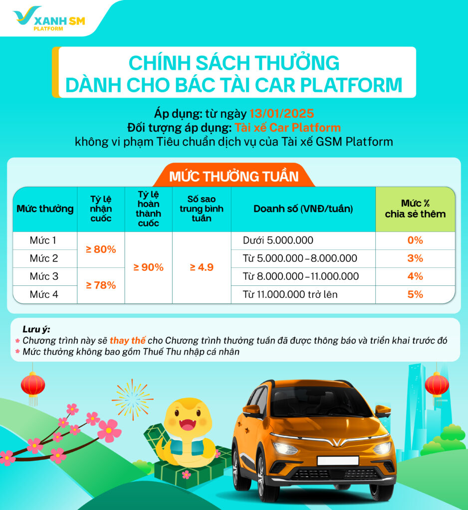 Chính sách chia sẻ doanh thu giữa tài xế Xanh SM và đối tác Platform 2025