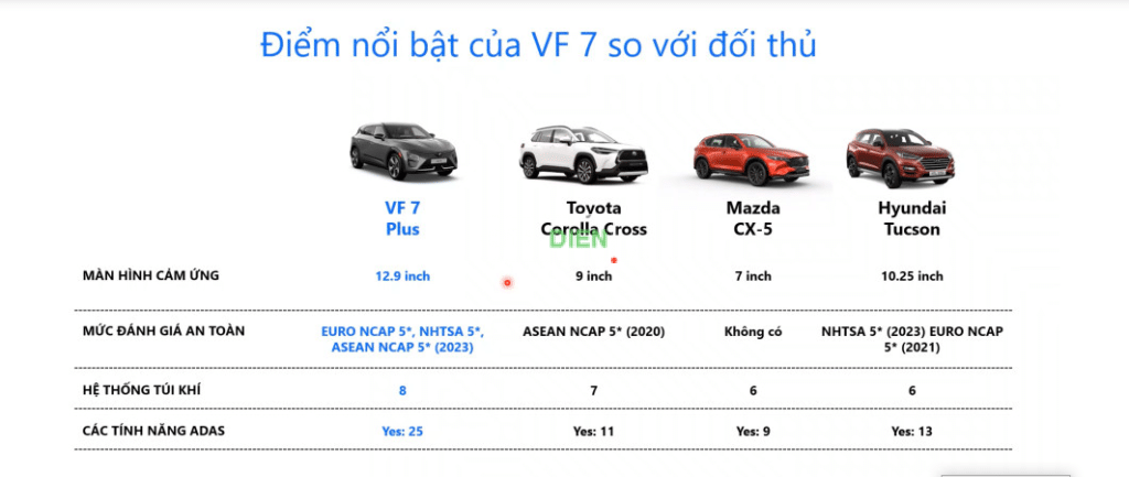 - VinFast VF7: Xe điện với công nghệ tiên tiến, phần lớn ưu thế ở hiệu suất và chi phí tiết kiệm.